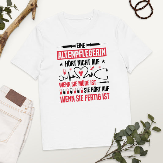 • Eine Altenpflegerin hört nicht auf wenn sie müde ist. Sie hört auf, wenn sie fertig ist - Oversize Tshirt - 100% organische Baumwolle